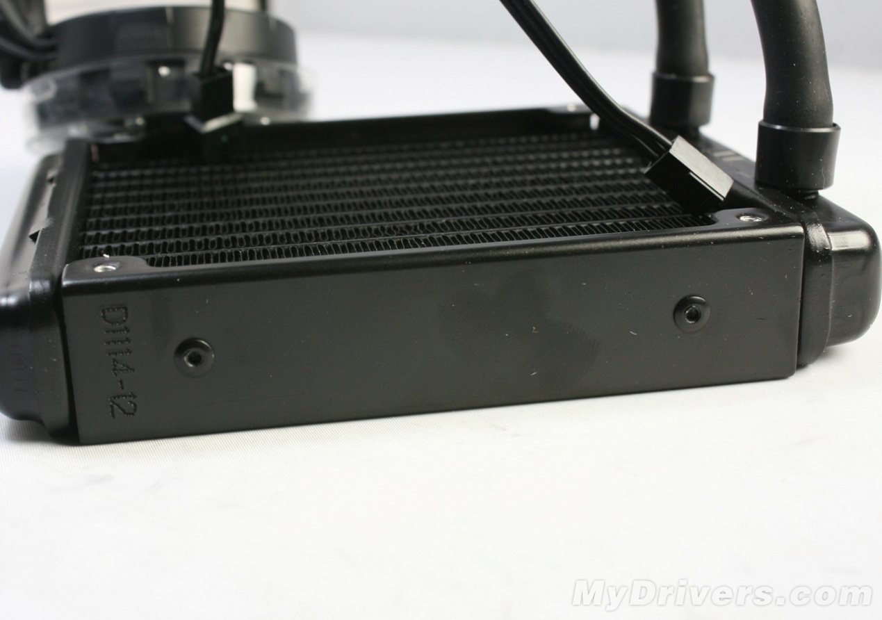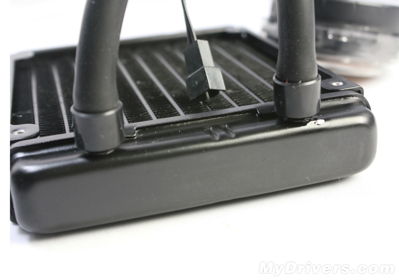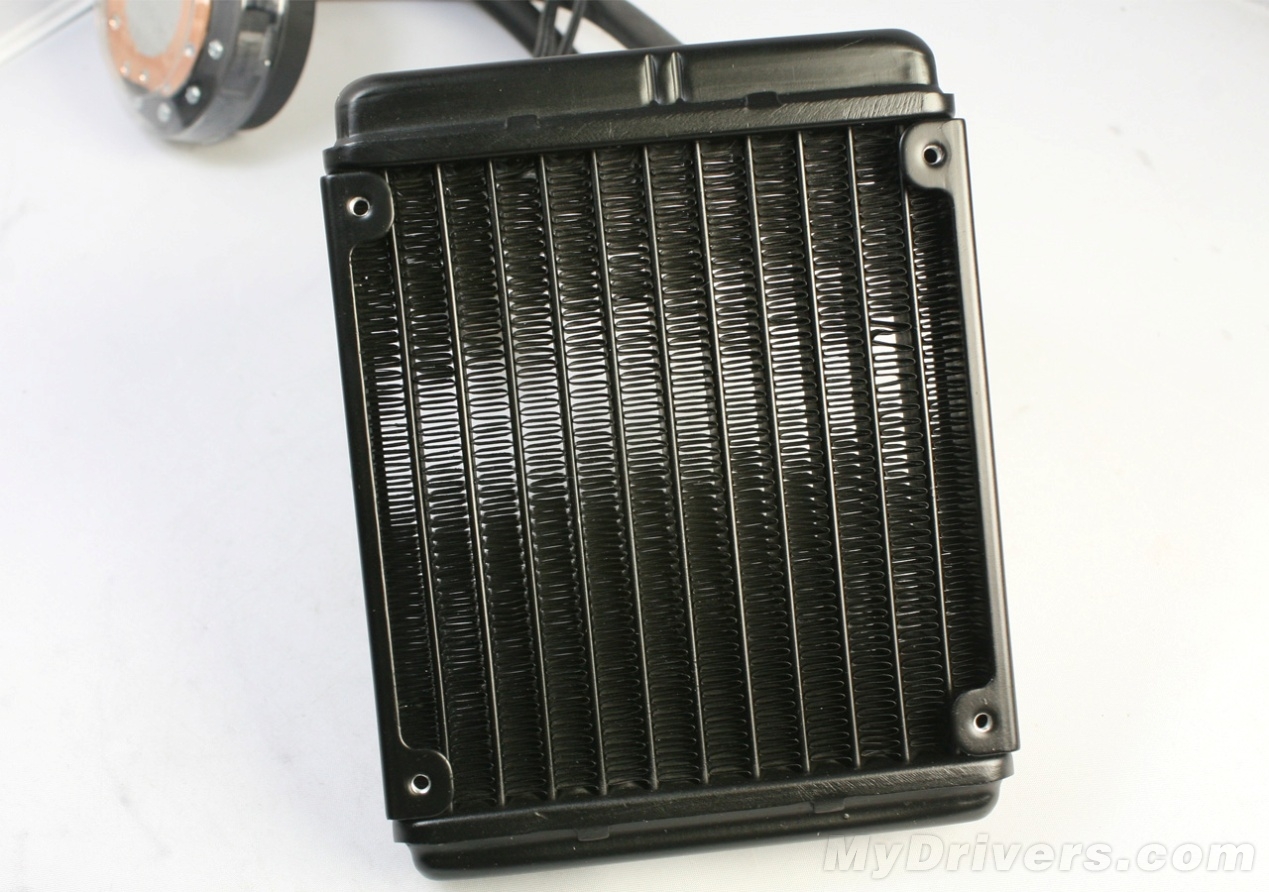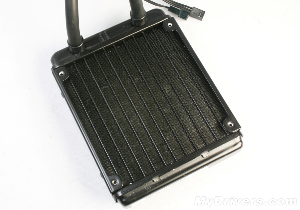 【鲨鱼高手688LC散热器图赏三】水冷排,集成了散热片以及水箱,水管直接在散热鳍片中进出,最大程度的增加散热面积。