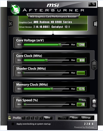 HD 6970的性能在我们过往的文章中已经测试过多次,而这款蓝宝HD 6970终结者的预设频率和公版卡的标准频率完全一直,实际跑分性能没什么差别,所以这里就不再进行过多的游戏帧数测试,下面主要从显卡的超频、温度以及噪音三方面进行测试。