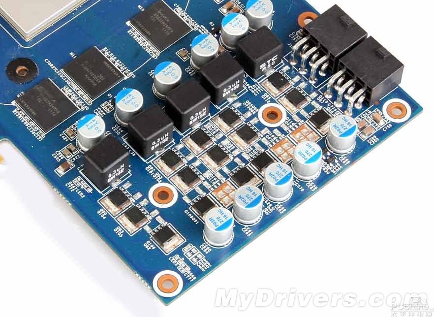 供电做工方面,影驰GTX560大将采用核心显存分离4+1相供电,用料上配备了全固态电容,并采用多颗POSCAP钽电容,为显卡长期稳定运行提供了保证,配合影驰独家研发的魔盘HD,进一步提升显卡的超频潜能。