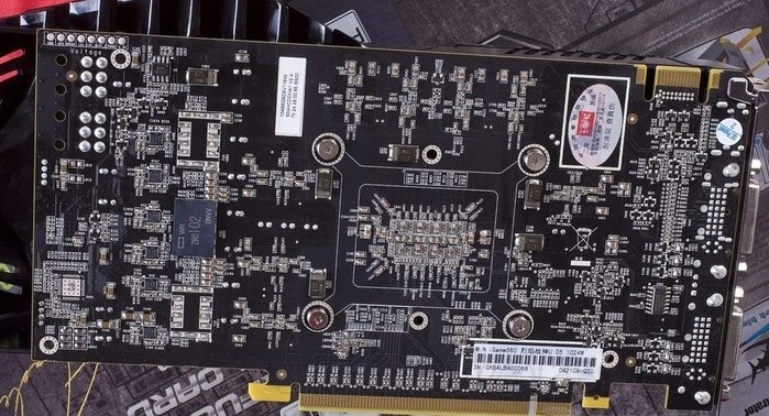 显存方面,采用三星 0.4ns GDDR5显存,正面8颗组成1024MB/256Bit,核心与显存频率为850/4050MHz,相比0.4ns显存理论5000MHz运行频率,该卡预留了相当的超频空间给玩家,很轻松的超频到900/4400MHz以上,性能超过HD6850。