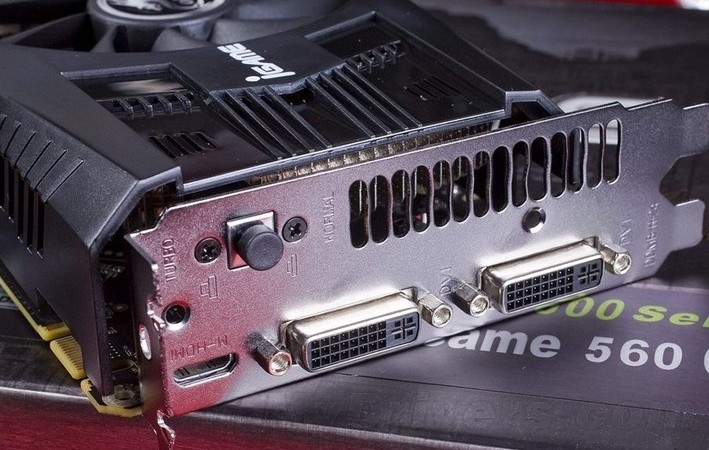 输出方面,七彩虹 iGame560 烈焰战神U采用双DVI+HDMI输出接口方式,背板还有一键超频按键,瞬间免费提高性能。