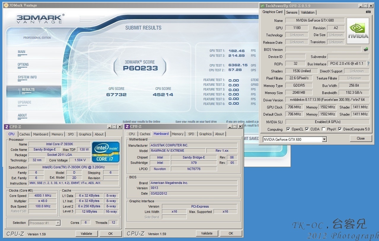 四路GTX 680在3DMark Vantage P模式中成绩为60233