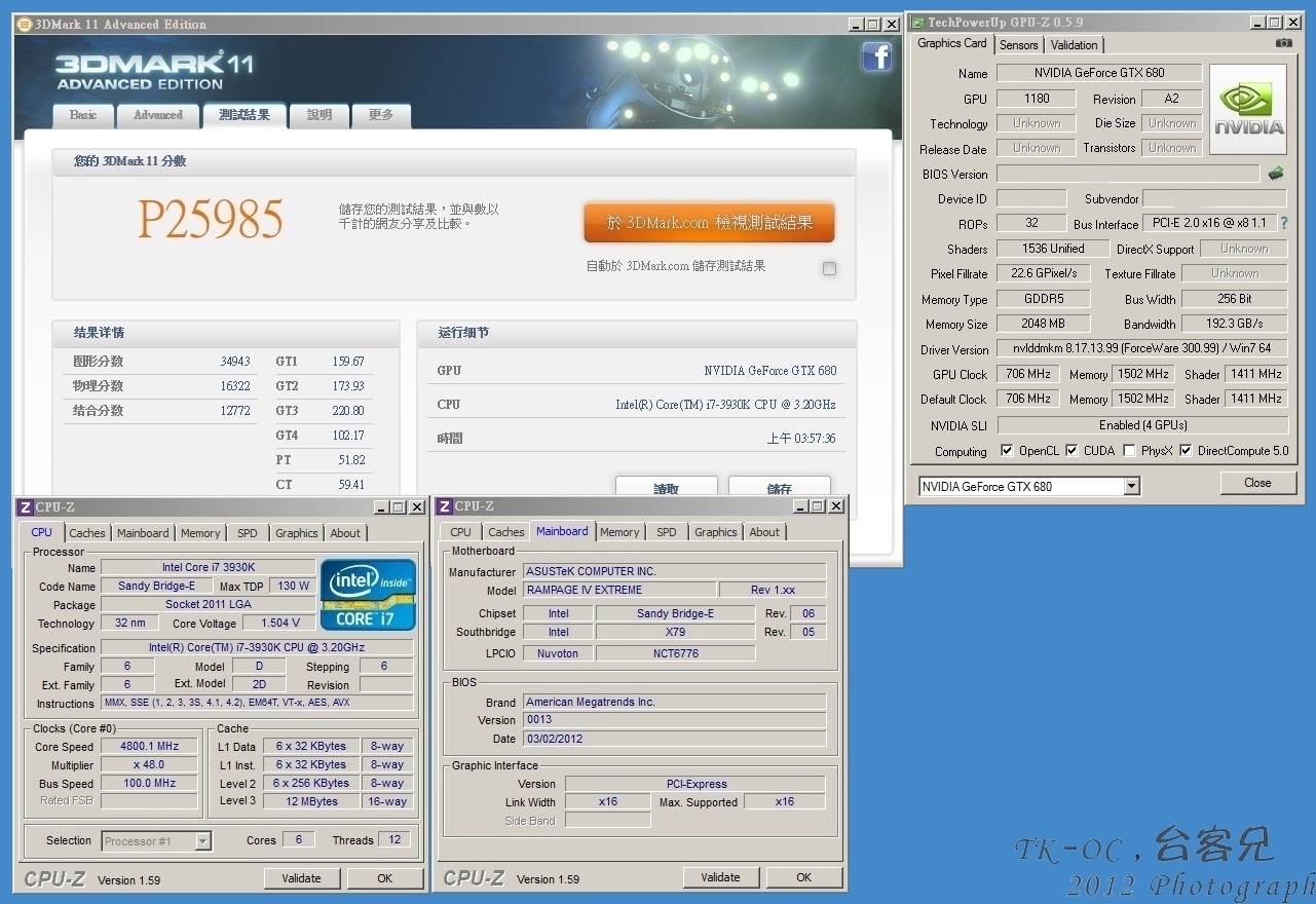 四路GTX 680在3DMark 11 P模式中成绩为25985