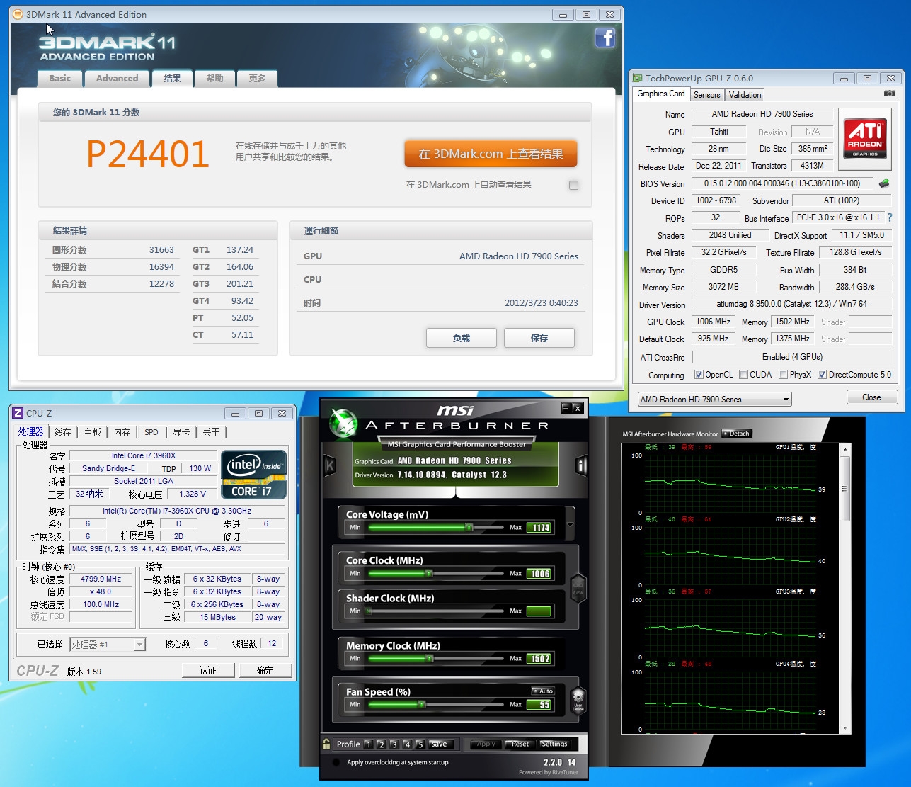 四路HD 7970在3DMark 11 P模式中成绩为24401