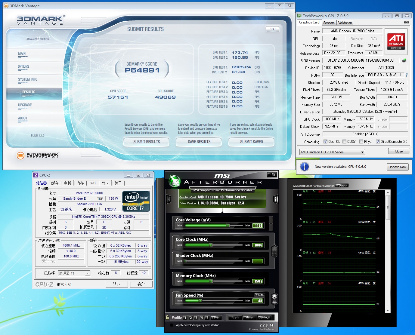 双路HD 7970在3DMark Vantage P模式中成绩为54819