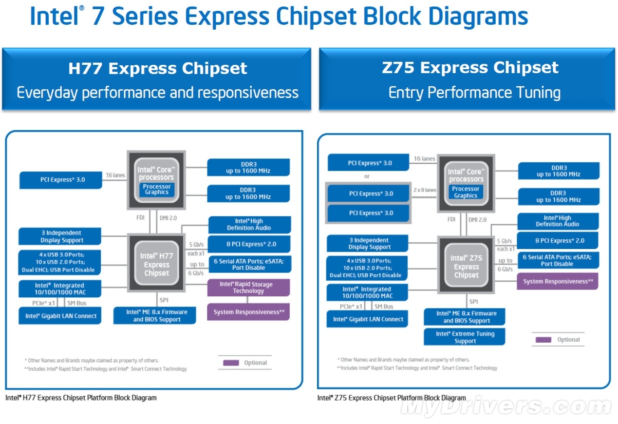 现如今的芯片组已经不是传统意义上的芯片组了,处理器的高度集成化让让芯片组所担负的功能越来越简单,与其说是芯片组倒不如说是南桥芯片更加准确一些。Intel全新的7系芯片组与上一代6系的定位类似,桌面共分为H77、Z75以及Z77三款,商用型号则有B75、Q75以及Q77三款。