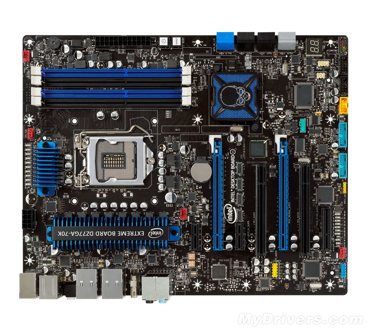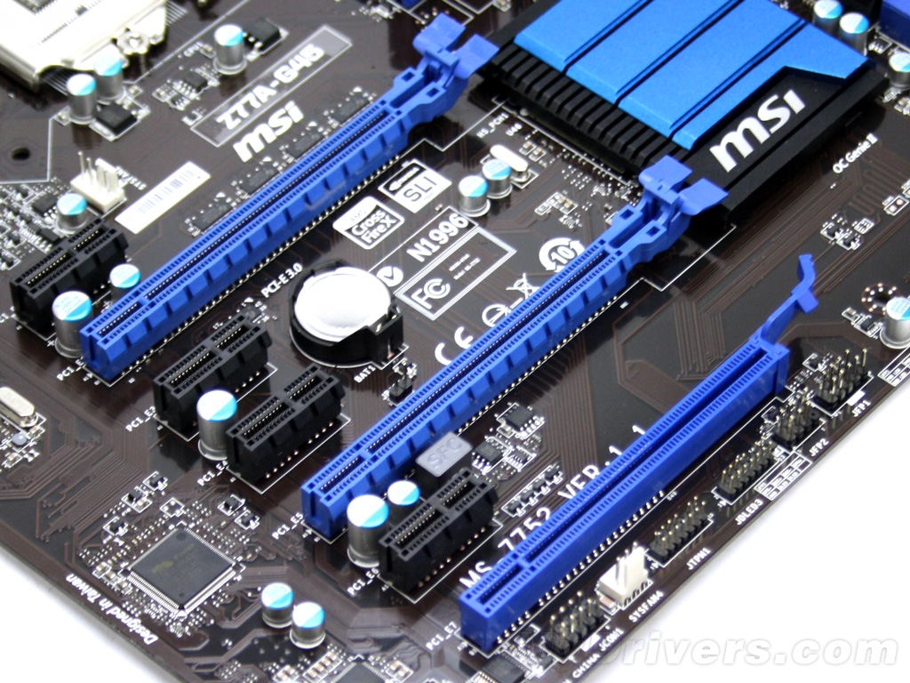 扩展插槽则包括两条PCI -E 3.0 ×16 插槽、两条PCI-E ×1插槽、一条PCI-E ×4插槽以及两条PCI插槽,虽然Intel在7系桌面民用芯片组取消了对PCI插槽的支持,但Intel原厂主板还是通过第三防桥接芯片把它给重新弄了出来。