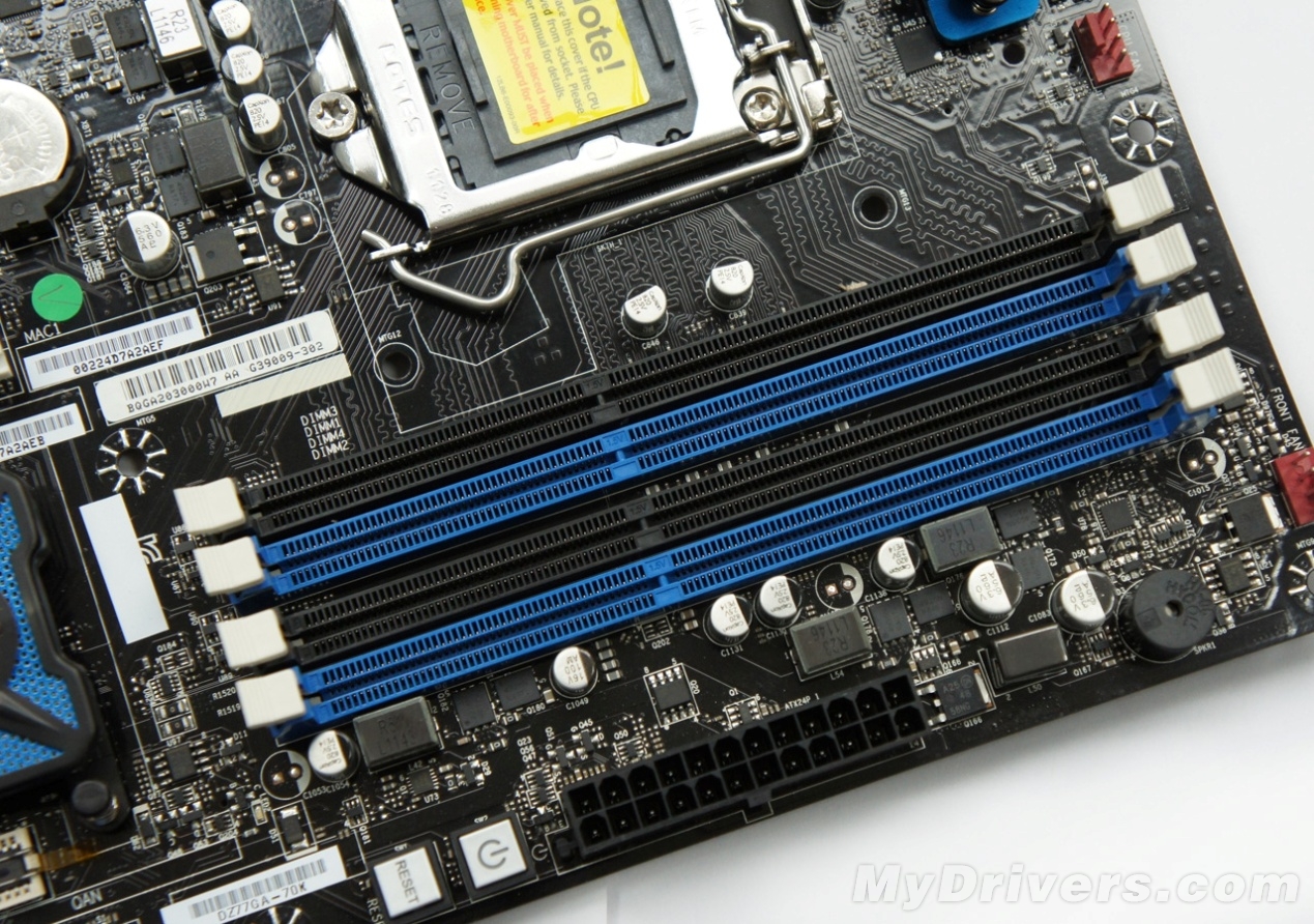 四条双通道DDR3内存插槽,最高支持内存频率为DDR3-2800,最大容量32GB。