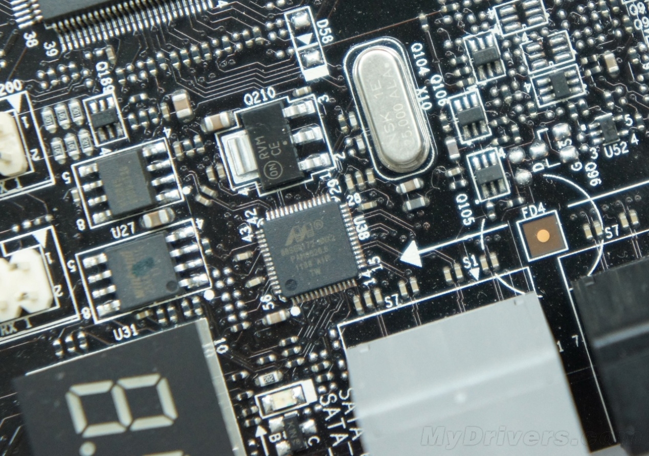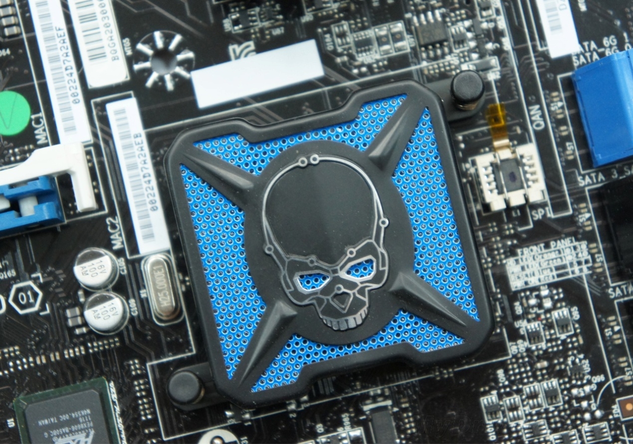 存储接口除了Z77芯片组原生提供的两个SATA 6Gbps(蓝色)、四个SATA 3Gbps(黑色)之外,还有第三方桥接芯片提供的两个SATA 6Gbps接口(灰色)。