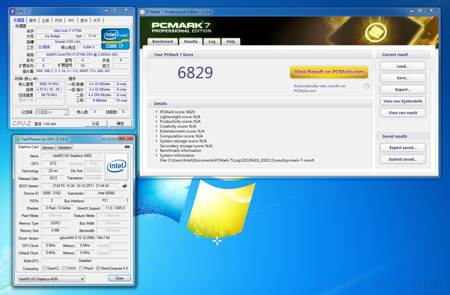 奇葩!绝对的奇葩!在上文中我们搭配GTX 680的PCMark 7总成绩也仅为5600分左右,这里搭配Intel核芯显卡居然达到了6829的高分,数次测试均是如此,只能归结为PCMark 7的Bug导致,或者就是Intel作弊太明显了。