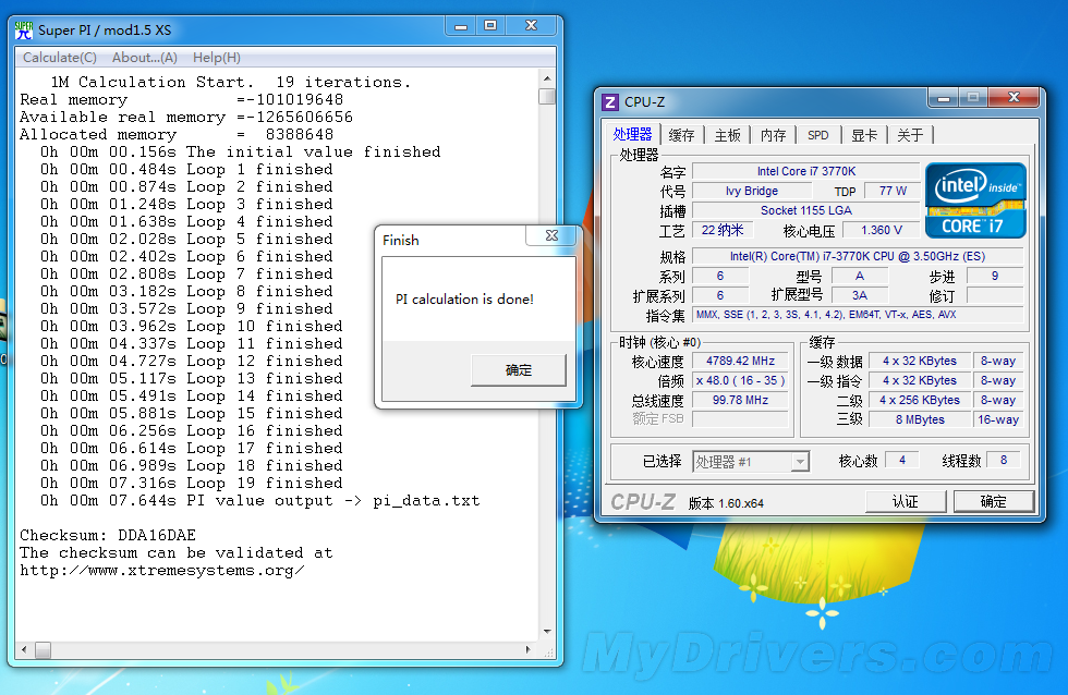 Ivy Bridge Core i7-3770K毫无悬念的战胜了i7-2600K,跑Super Pi 1M成功迈进10秒大关。