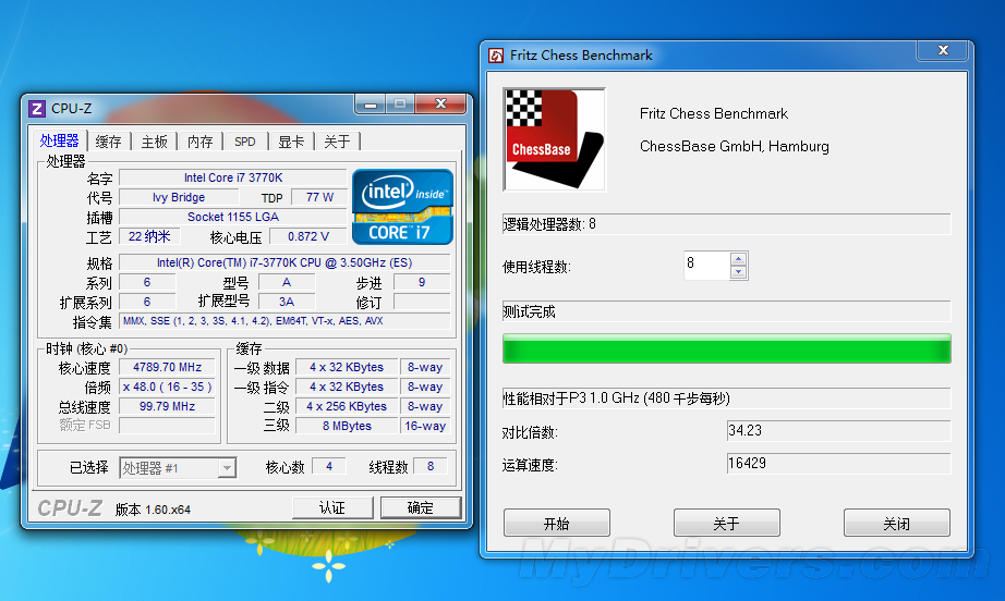 国际象棋测试中i7-3770K的成绩相对于i7-2600K也有了大约7%左右的提升,但这个差距更有可能是由于核心频率相差0.1GHz所造成的,相信对比2700K的话,i7-3770K就赢不了这么多了。