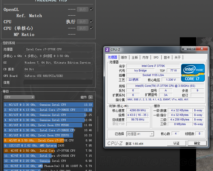 CineBench R11.5测试中,Core i7-3770K的单核心性能相对于i7-2600K以及i7-3960X都有了一定程度的提升,幅度大约在7%左右,整体性能方面i7-3770K也能够轻松战胜2600K,但由于核心数量的差距,距离i7-3960X还差得远。