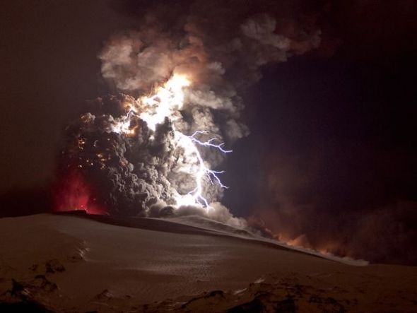 2010年4月,冰岛埃亚菲亚德拉冰盖火山喷发的火山灰中出现了一道道闪电。当不断涌动的火山灰粒子相互摩擦生电,就会产生火山闪电。