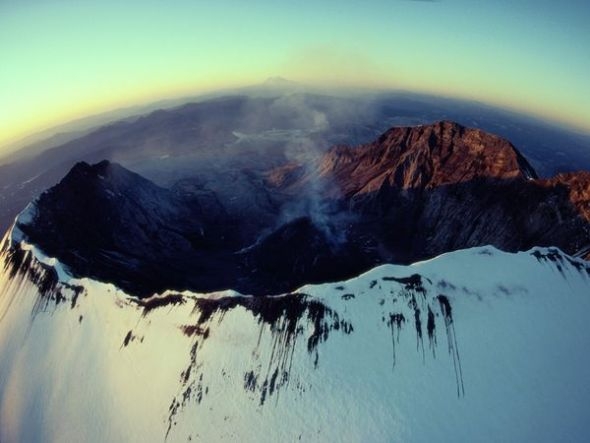 一缕缕青烟从喷发后的圣海伦斯火山蛋壳状火山口飘向天空。圣海伦斯火山位于美国华盛顿州,这座火山最为人所知的是1980年灾难性喷发,造成57人死亡,房屋、桥梁、公路被毁,引发大量岩屑崩落,在山上留下一个1英里宽(约合1.6公里)的火山坑。