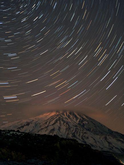 在这张长时间曝光照片中,伊朗达玛万德峰(Mount Damavand)上空星光闪耀。达玛万德峰是里海以南厄尔布尔士山脉的一部分,不但是亚洲最高的火山,还是中东最高的山峰。