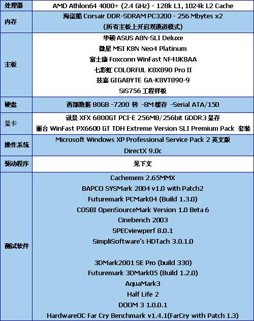 所有测试都在1024x768x32bit(NOAA、NO AF)、LOAD BIOS DEFAULT下进行。