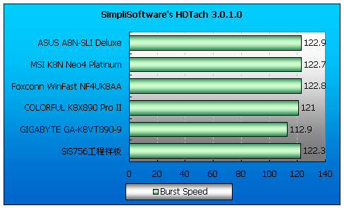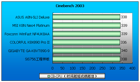 不过WinFast NF4UK8AA的品质可不缩水(富士康的做工),实际测试中它的成绩比微星K8N Neo4还稍好一些。