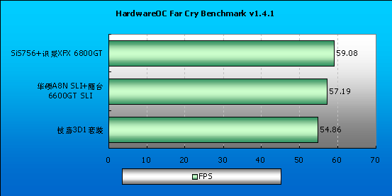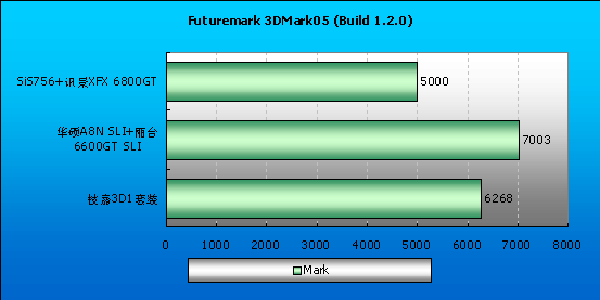 我们看到,3D1并不如理论上那样,直超SLI,它们的得分基本接近甚至比SLI要更低一些,这或许是由不同版本的显卡驱动造成的;Far Cry和Half Life中双6600GT SLI还是超不过单6800GT,唯一例外的是3Dmark05,SLI和3D1都遥遥领先,SLI和6800GT的得分差距甚至超过了2000分之多,看起来,在未来更多纯DirectX9游戏中,SLI会有更强的性能优势。