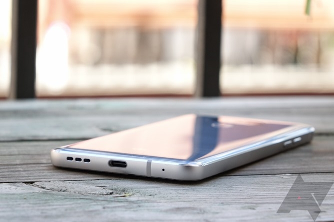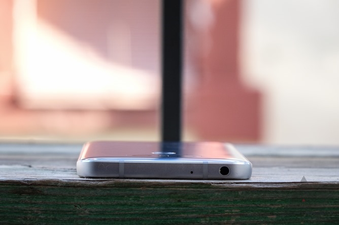 夏普为了营造三面“无”边框的屏幕体验,将5英寸的屏幕“挤兑”到机身底部,并采用了Android手机中较为少见的两段式设计,将前置摄像头、光线传感器和LED指示灯等移到机身底部。