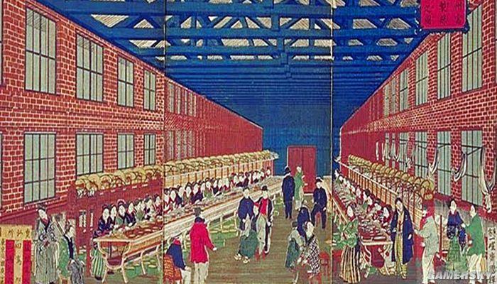 当年的任天堂花札生产工厂,虽然引入机器作业,但最后的切割工作依然由人手完成