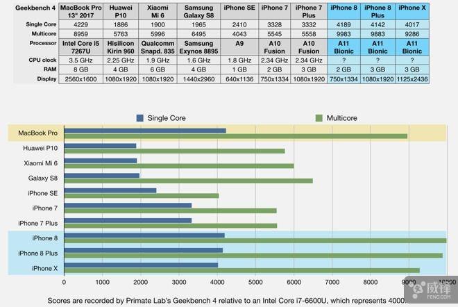 如今在性能上,苹果ARM处理器变得更强了,最新发布的A11仿生芯片,通过Geekbench分数了解,在CPU性能上目前超过了所有Android旗舰级智能手机的ARM芯片。