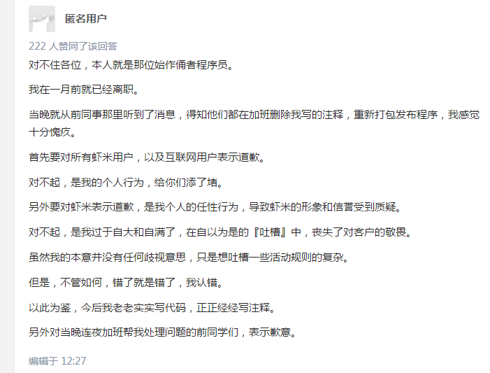 公关部给我写了一篇很长的稿子,因为我最近讲话比较谨慎,我刚和刘强东讲说话要谨慎,万一说话错了,最谨慎的是照着稿子念,前段时间我照着稿子念,还不错,念到最后我都笑场了。