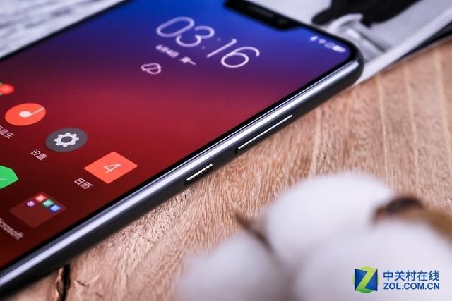 联想Z5机身左侧为SIM卡槽,右侧则是电源键和音量键,其中电源键上有横向切边,即使盲按也不易误触。