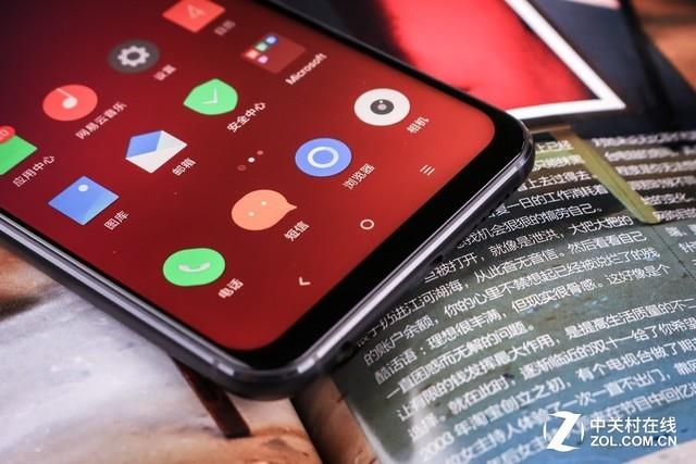 其顶部为“刘海”,集成了前置摄像头、听筒和光线与距离传感器。在使用时,用户可以选择隐藏“刘海”,达到一体化的顶部显示效果。其底部则是收窄了的“下巴”,没有任何按键或logo。