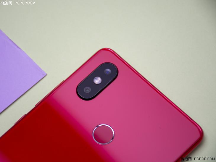 联想Z5的背面顶部为竖排的后置双摄,略有凸起,下方则为补光灯,后置指纹识别键则与补光灯平齐,底部则为联想logo。