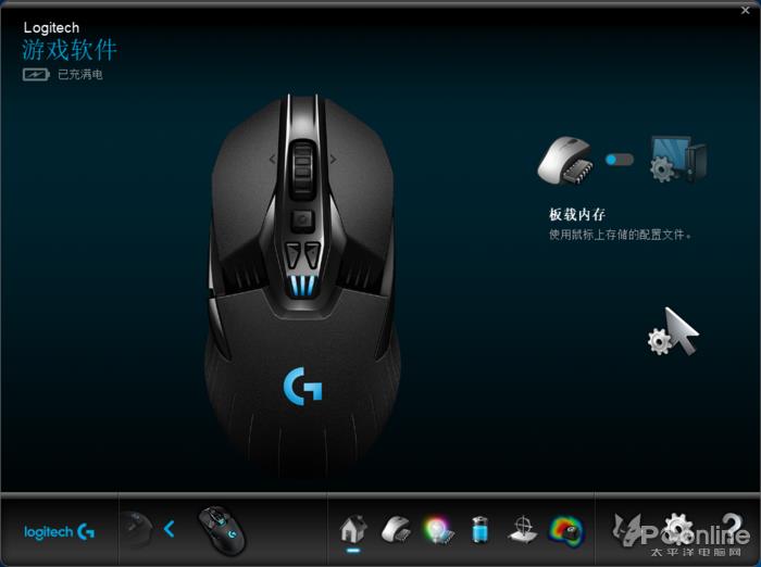 以罗技G903为例,在初始界面首先选择是设置板载配置文件还是设置PC存储配置文件,罗技将所有的设备选择都放置在左下方的区域通过点击更改需要选择的设备。