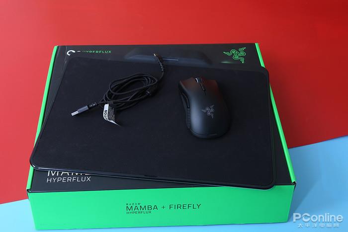 首先我们先从包装谈起,由于雷蛇是直接无线供电套装,注意,这里是无线供电,雷蛇曼巴超极版没有电池,由无线供电鼠标电直接进行鼠标的供电,所以,两者是不分开卖的。