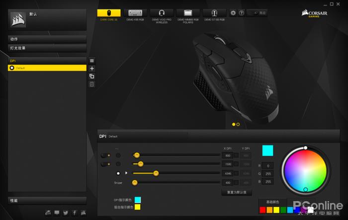 除了包含各种DPI等参数的设置,雷云还独有的CHROMA灯效控制,不仅可以和合作厂商的灯光灯效进行互动,更是能够设置不同的灯效和颜色,还能下载官方的定制多种游戏灯效。