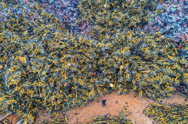 在王庆坨的空地上,有媒体拍到了大批废弃的共享单车,估算大概有数万辆,绝大多数是已经倒下的公司,比如酷骑、小拜,在荒凉的农田里,似乎在诉说着往日的辉煌。