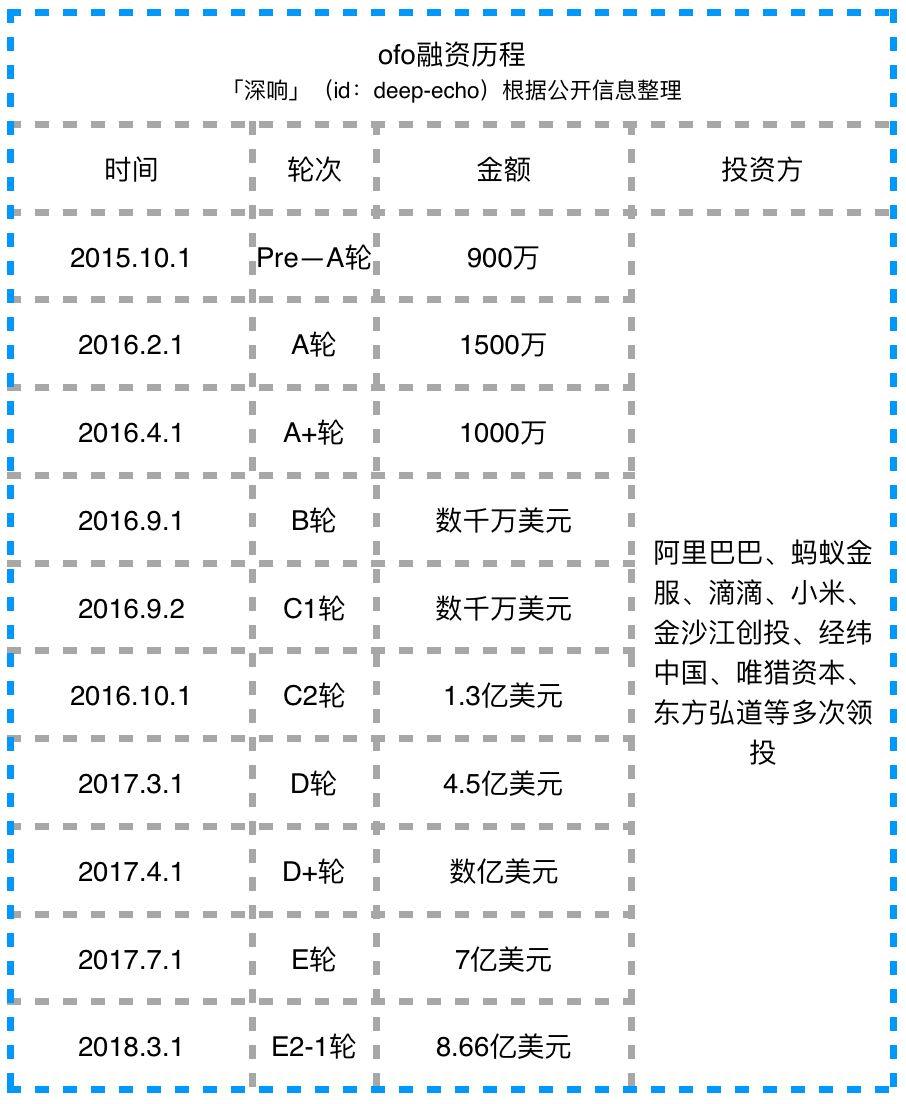 创业公司敢如此烧钱大打补贴战,其底气是来自于背后的投资方。时至今日,摩拜和ofo都已经历了数轮融资,总金额达数十亿美元。