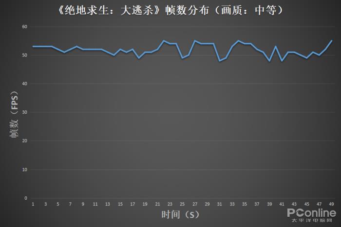 所以为了兼顾流畅性和画面质量,我们把特效开到了玩家最为常用的中等,分辨率为为1920×1080,火影金钢T5的游戏帧数在50多帧左右,画面流畅,所以用火影金钢T5吃鸡是没有问题的。