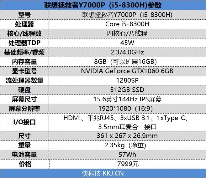 我们推荐的这款联想拯救者Y7000P采用了最新的酷睿八代i5-8300H处理器,基础频率2.3GHz、最高睿频4.0GHz,三级缓存高达8MB。除了频率有所提高之外,相比7代i5-7300HQ处理器,8300H还拥有超线程,四核心八线程可以在处理多任务时更加顺畅。