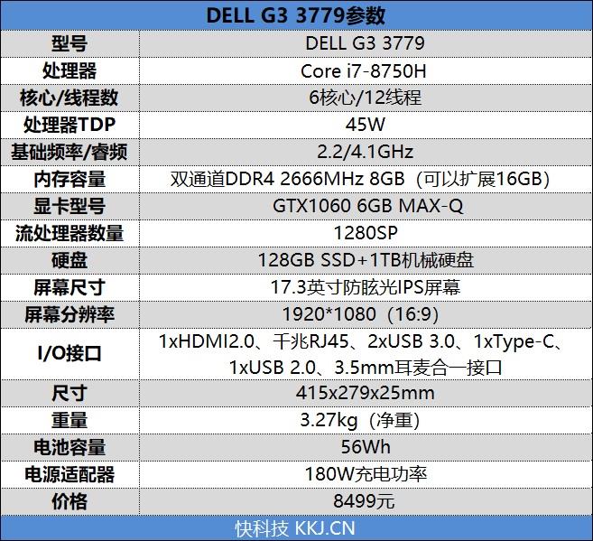DELL游匣G3 3779目前电商平台售价为8499元,另外还有一款15.6寸的型号G3 3579,同样也是i7-8750H+GTX1060 6GB MAX-Q配置,价格仅售7499元,性价比爆棚。