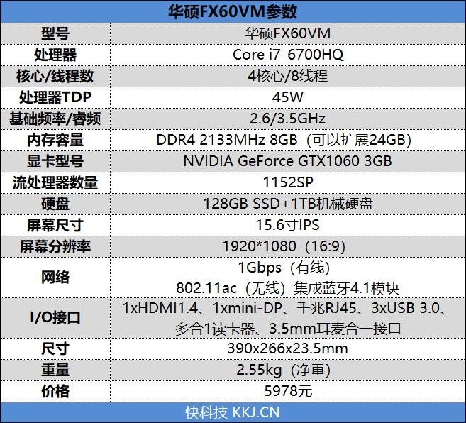 当然,华硕飞行堡垒三代FX60VM最大的看点还是价格,不到6000元的价格就能买到四核i7处理器+GTX1060独立显卡的笔记本,你还能再要求什么呢?同等的配置就算是台式也未必可以买到。