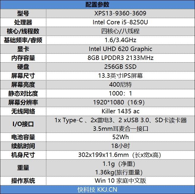 DELL XPS 13-9360采用了最新的八代酷睿i5-8250U,基于14nm制程,核心代号为KabyLake Refresh -U,采用四核心八线程设计,默认主频为1.6GHz,支持睿频至3.4GHz,3级缓存6MB,TDP为15W。