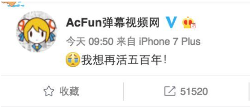 这位老员工这么说也有点儿道理。毕竟当时的A站虽然顶着“国内首家弹幕视频网站”、“B站的大哥”等名头,但确实已经走到了生死的边缘。而有钱有流量的快手愿意将其收入麾下,对当时在官微喊出那句“我想再活五百年”的A站而言,无疑是一件幸事。