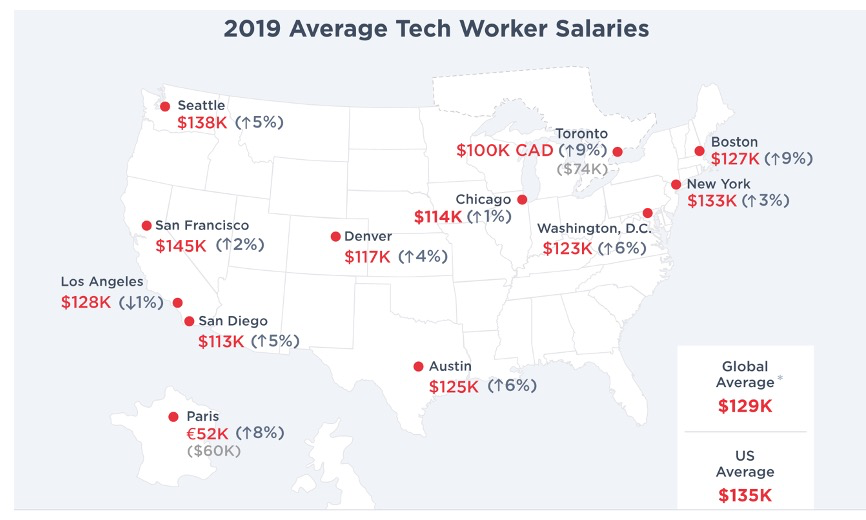 图片截自于Hired 2019年科技薪酬报告