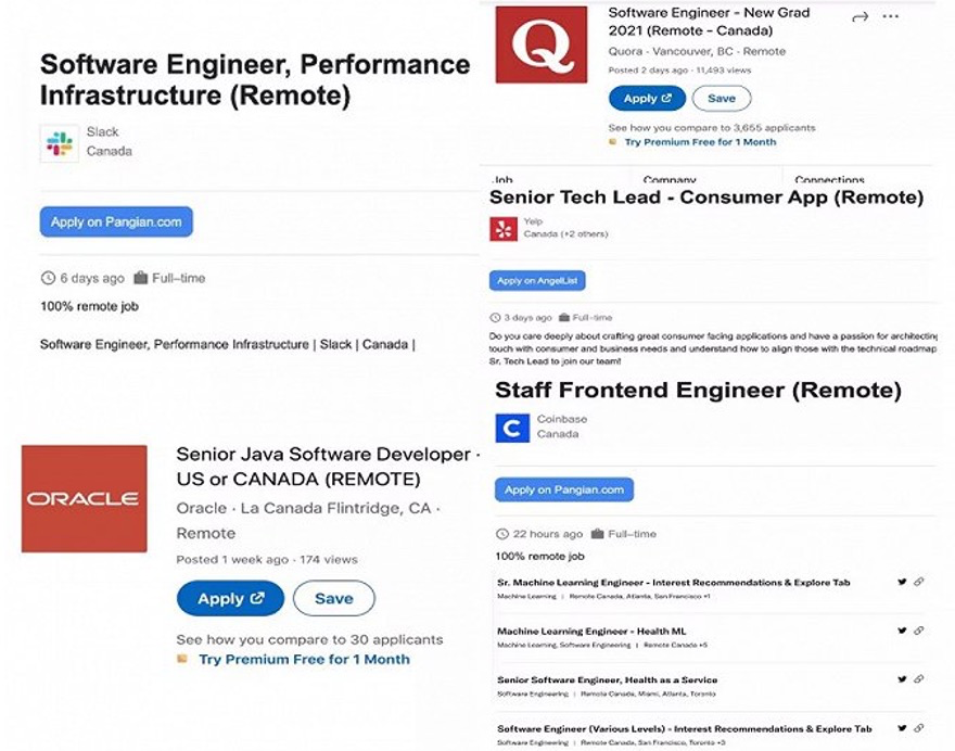 硅星人此前总结的部分硅谷公司近期在加拿大放出的远程工作职位情况