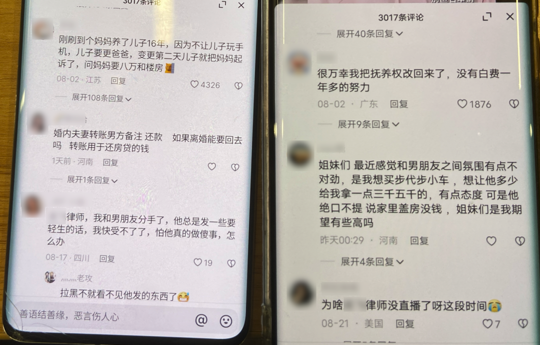 结果在最后一位律师的评论区,我们才遇到靠前评论差别较大的情况,至于其他两位,完全一致。
