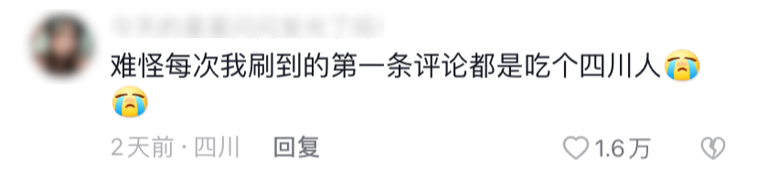 比如一位四川 IP 的网友说,每次刷到第一条评论都是吃个四川人。