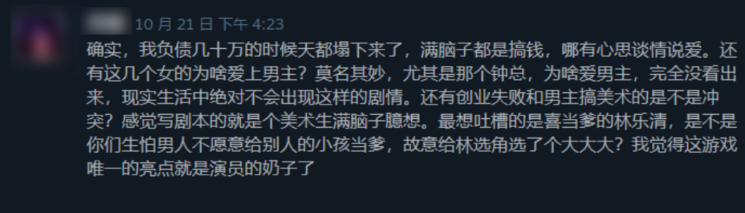 所以,每当我看到那些批评这款游戏的玩家,我就忍不住想替她说两句话。