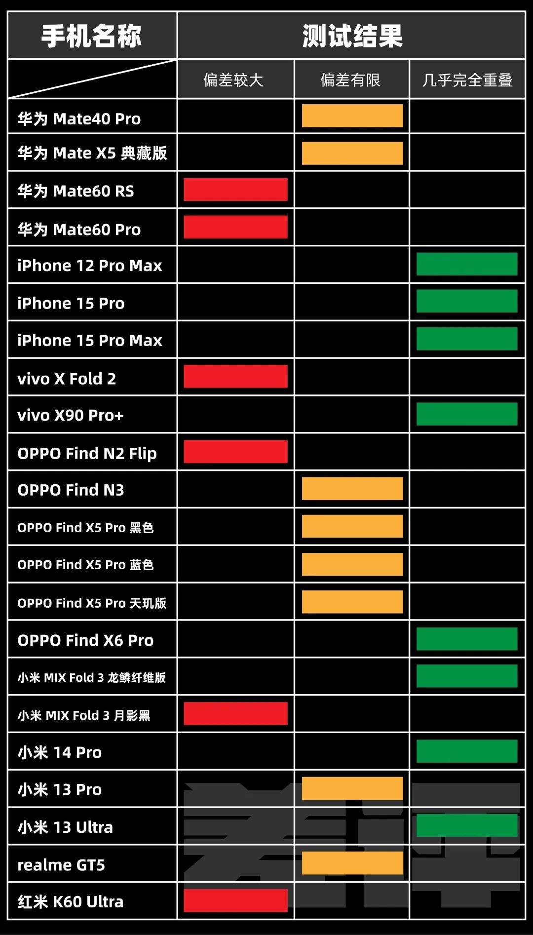 而分别安装多摄像头的手机,例如 MIX Fold 3 、 Mate 60 Pro ,不少都出现了偏差表现不一的情况。