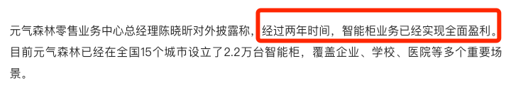 像是在今年 9 月,元气森林就向外界宣布无人柜业务全面盈利了,但小方觉得这是暂时性的。