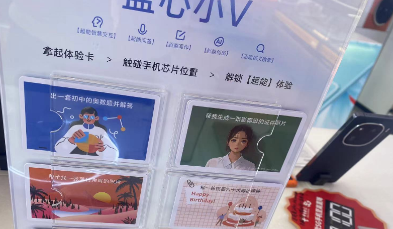 荣耀合作渠道门店针对进店客户,重点主推荣耀100相关配置,几乎不提及荣耀100的大模型能力。vivo相关门店只是在门店内投放相关卡牌,介绍蓝心小V所具有的能力。