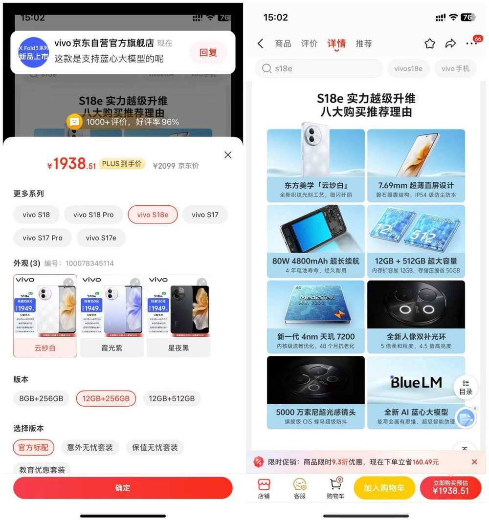 为快速提升AI手机出货量,vivo直接将搭载蓝心大模型的S18e系列12GB+256GB系列的价格直接拉到2000元以下,这对其他AI手机的冲击是显而易见的。